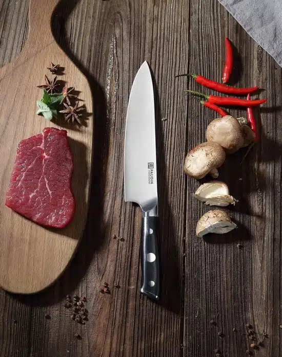 Het PAUDIN D1 koksmes is vervaardigd uit 7Cr17MoV staal dat vergeleken met het standaard Duitse 4116 staal een extra hoog gehalte aan Chroom, Molybdeen en Vanadium bevat. Dit geeft het mes een nog betere corrosie bestendigheid en het verhoogt de algehele sterkte, slijtvastheid en taaiheid in vergelijking met andere messen.