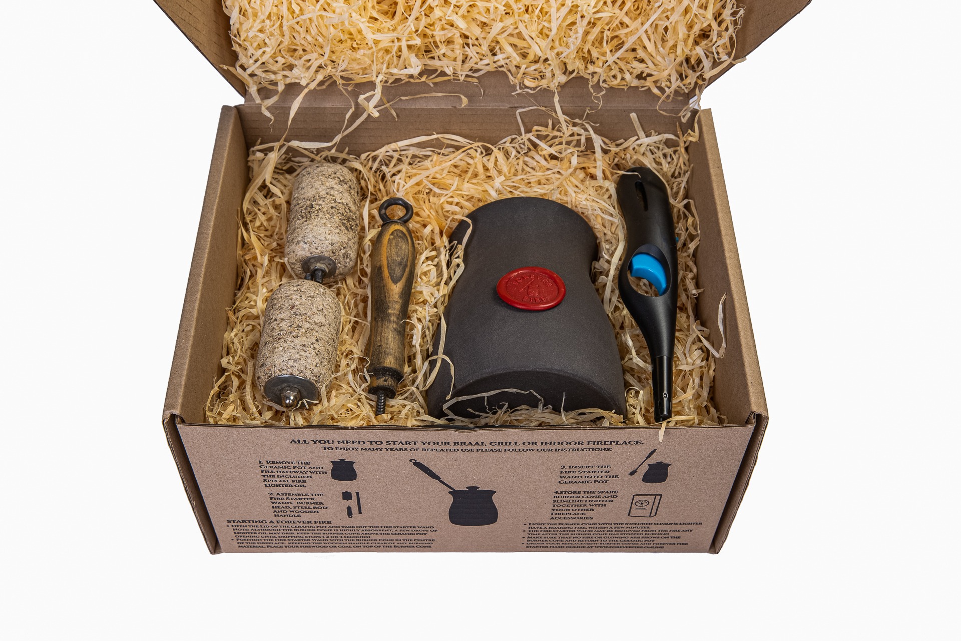 De herbruikbare Fire Starter Gift Kit van Forever Fire biedt u een schoon brandende en slimme vuurstarter van Zuid-Afrikaanse makelij. Deze set is het perfecte cadeau en is perfect voor elke open haard, haard of braai.