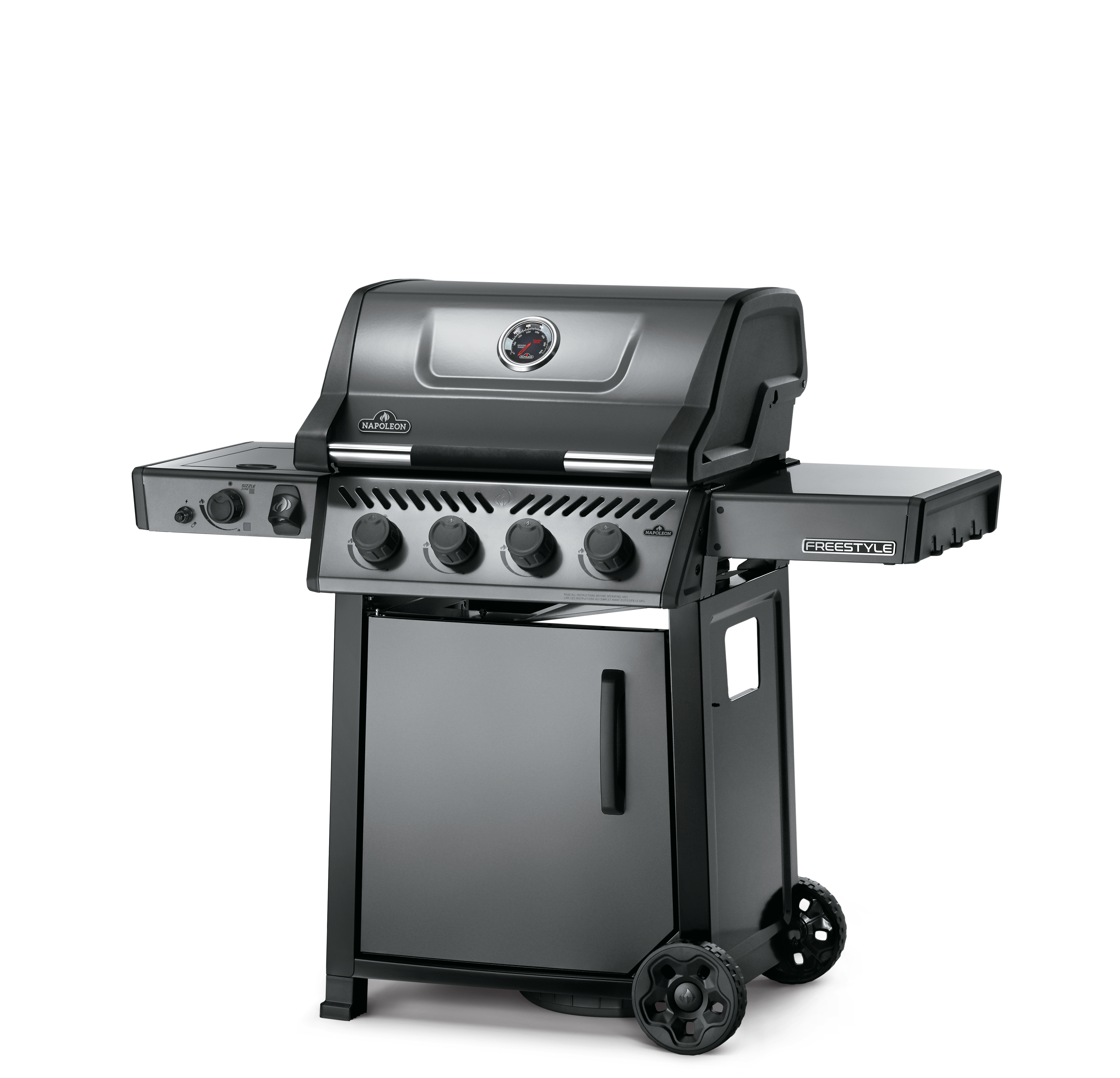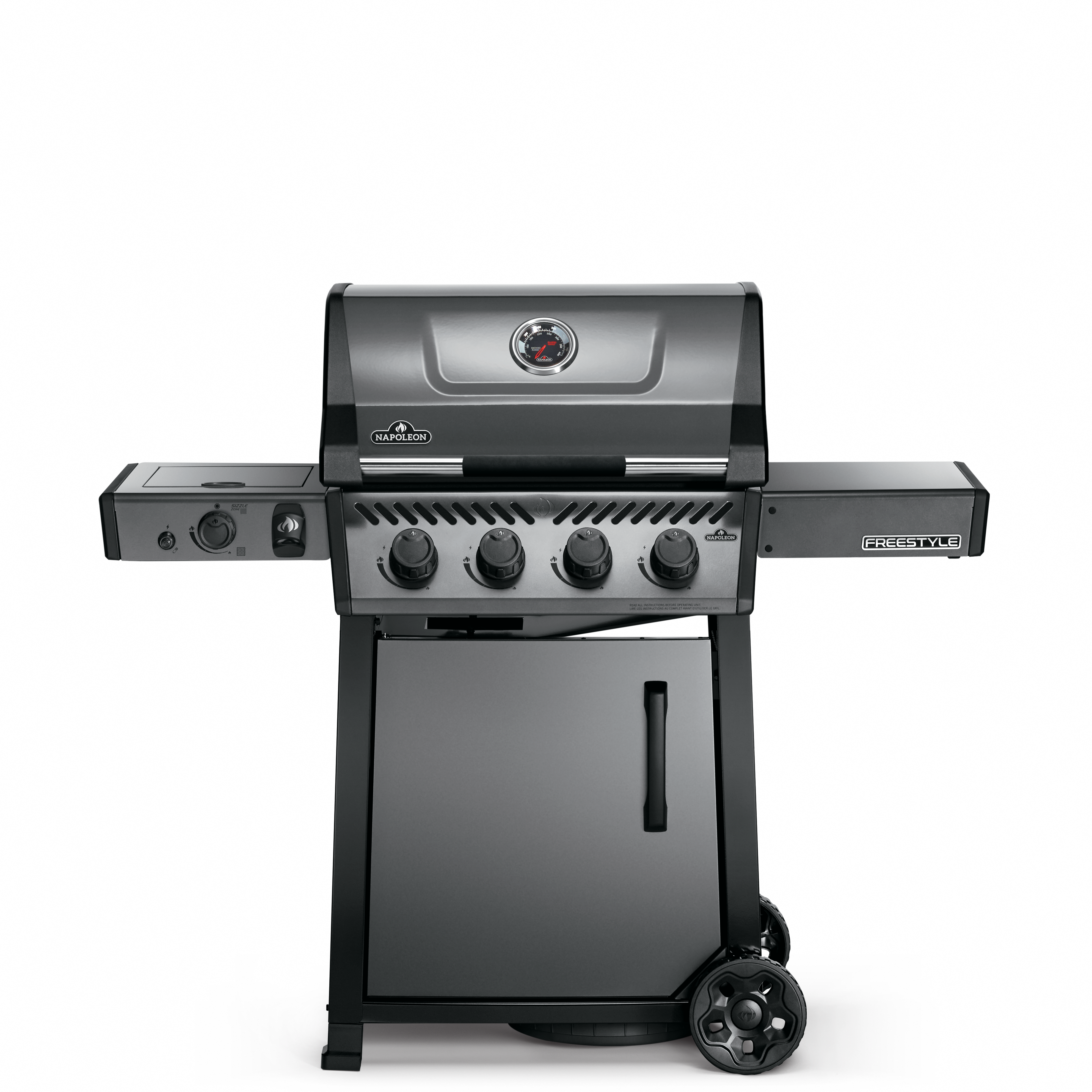 De Freestyle 425 propaangasbarbecue met SIZZLE ZONE™ infrarood zijbrander is een compacte grill met premium functies en een onklopbare prijs. Met betrouwbare JETFIRE-ontsteking waarmee de hoofdbranders probleemloos met een eigen, krachtige ontstekingsvlam worden aangestoken. Schroei het vlees perfect dicht boven de gietijzeren grillroosters met porseleincoating. Vier RVS branders bieden gelijkmatige warmte die eenvoudig geregeld kan worden en gecontroleerd met de ingebouwde thermometer. Schroei etenswaren dicht alsof het in een restaurant is gedaan of bereid zijgerechten tijdens het grillen met de infrarode zijbrander en het aanzetstation. Dankzij de robuuste wielen kan deze barbecue overal naartoe worden gereden, waar hij maar nodig is, terwijl de eenvoudig inklapbare zijtafels met gereedschapshouders en flessenopener ervoor zorgen dat de Freestyle bij uw levensstijl en ruimte past.