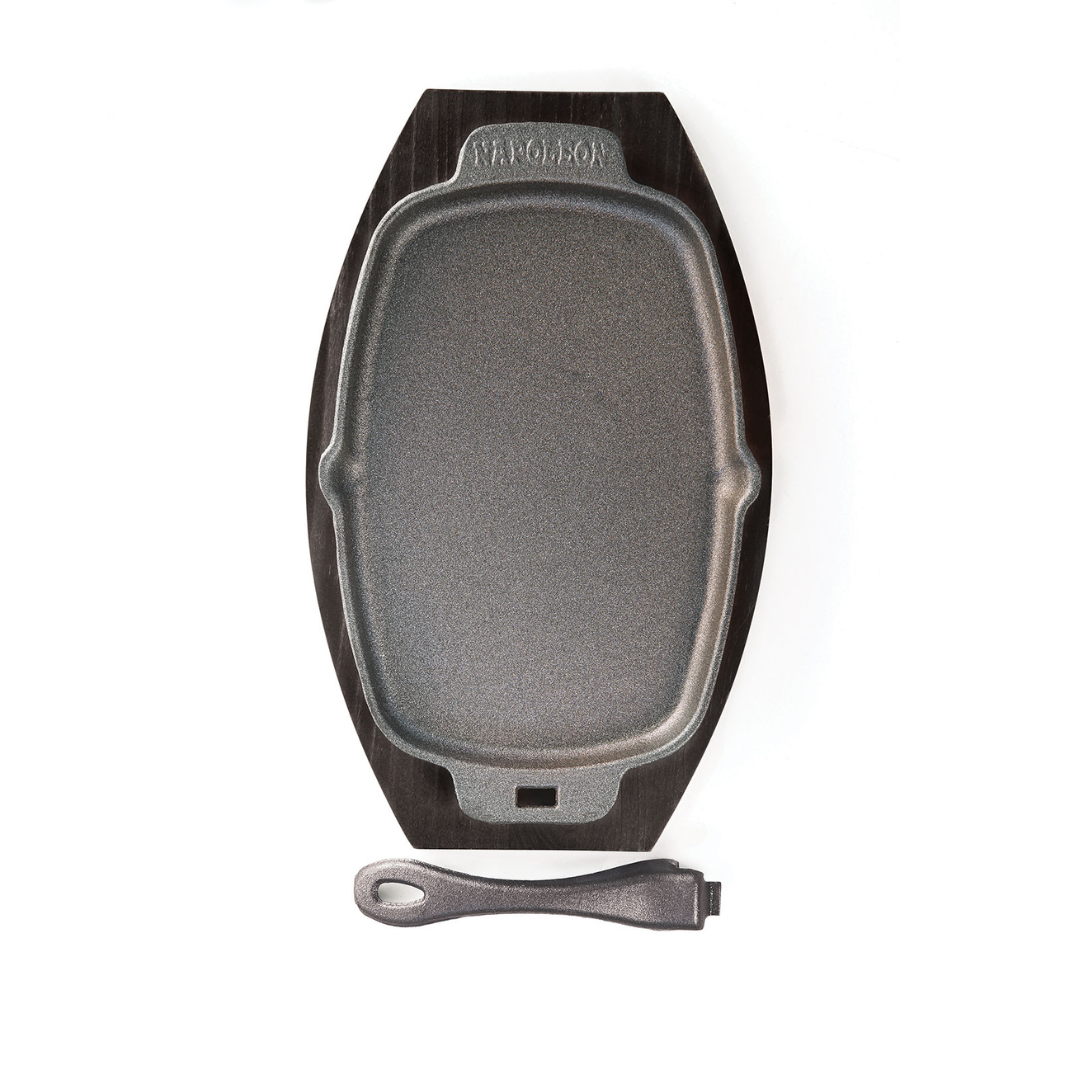 De Napoleon Pro-serie Bakplaat met houten serveerset is een veelzijdige maaltijdbereidingsmachine. het bereiden van perfecte fajita’s nog eenvoudiger. Gemaakt van duurzaam gietijzer met een porseleinen coating, jouw Sizzle Platter wordt bij elk gebruik beter. Hij is perfect voor gebruik op de grill, de zijbrander en met houtskool. Serveer rechtstreeks van de barbecue op tafel met behulp van de prachtige houten onderzetter. De afneembare handvaten blijven koel tijdens het koken, kunnen voor het koken gemakkelijk worden verwijderd en daarna weer in de sleuf geschoven als het nodig is. Stel je eens voor welke gerechten je allemaal kunt bereiden met jouw bakplaat met houten serveerset uit de PRO serie.