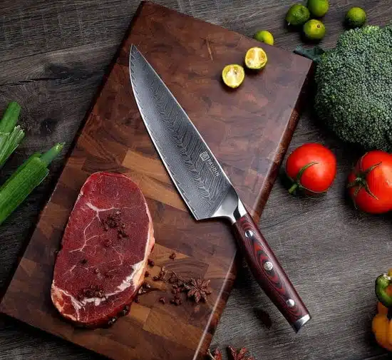 Zeer scherp exclusief koksmes van echt Damaststaal