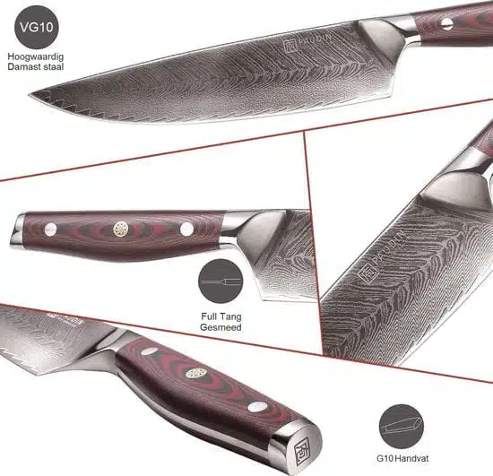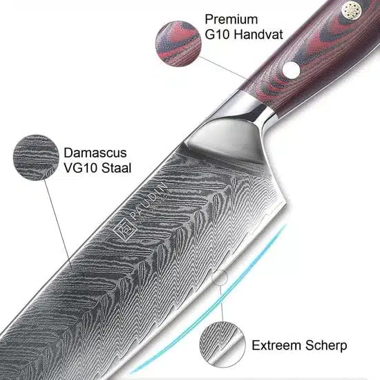 - Hoogwaardig Japans Damaststaal met VG-10 kern