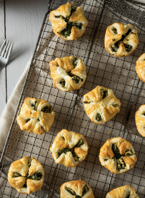 - Vouw in ieder muffinbakje een vel bladerdeeg.