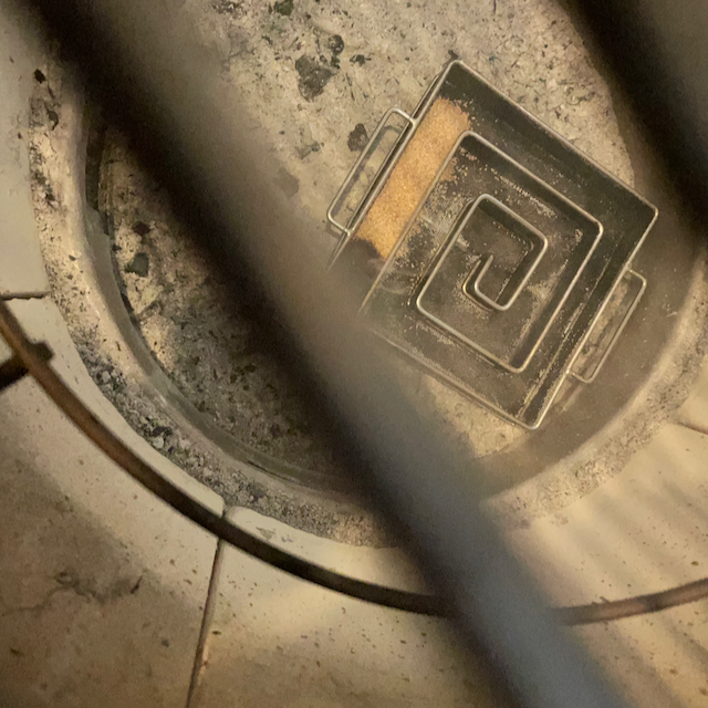 • Zet de cold smoke generator nu in de BBQ en steek de mot aan het begin aan. Ik doe dat door een waxinelichtje onder het begin te zetten. Deze kun je weghalen als de boel smeult.